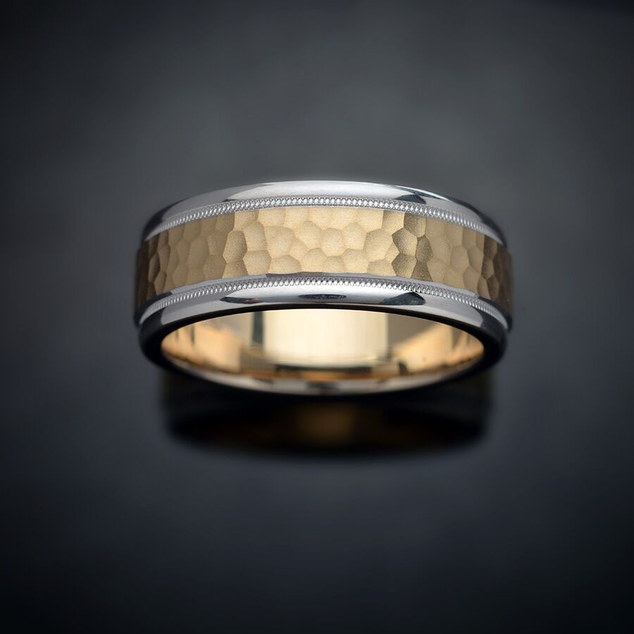 Hammered Milgrain 14K Two-Tone Wedding Ring (8mm)